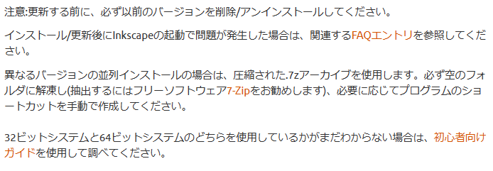 必ず前に入れたInkscapeがあれば削除してからインストールしてくださいという